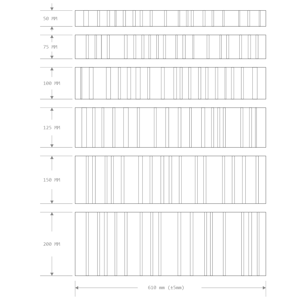 Module width: 50, 75, 100, 125, 150 and 200mm