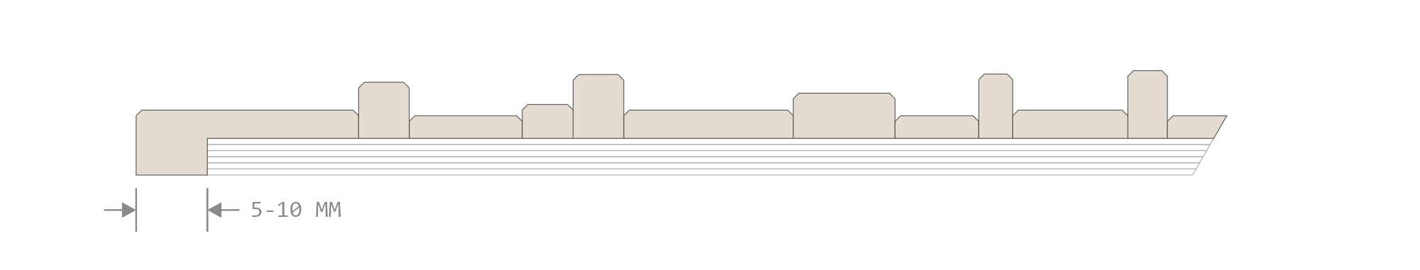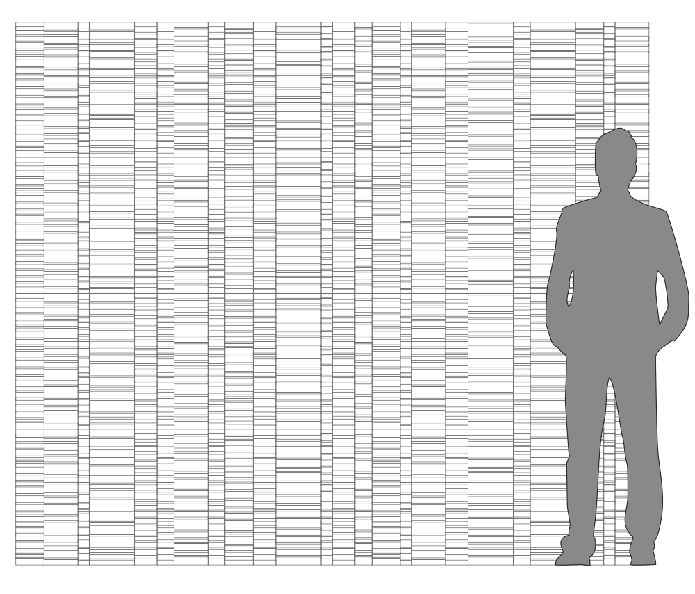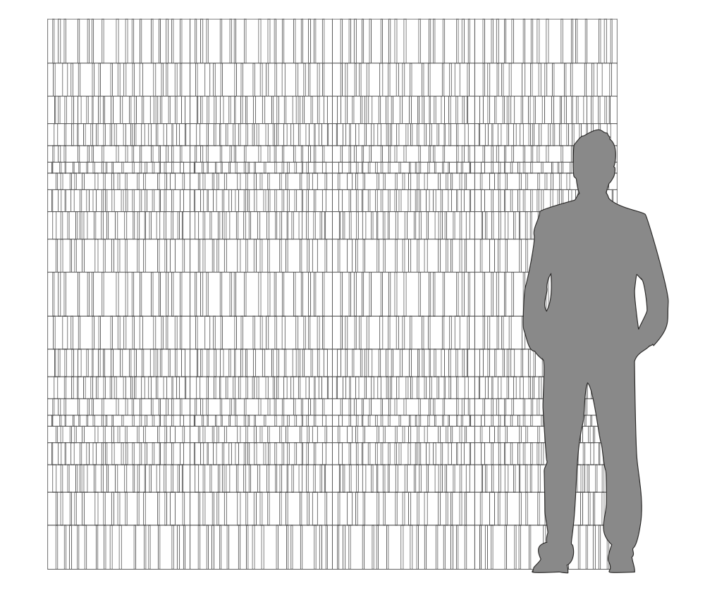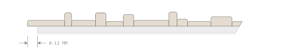 the pattern has six widths of 50, 75, 100, 125, 150 and 200mm, the length is 610 mm (±5). Tiles are made to measure and actual quantities of each size will depend on the installation area and pattern orientation. (widths of the tiles can be customised, please contact us for more information)